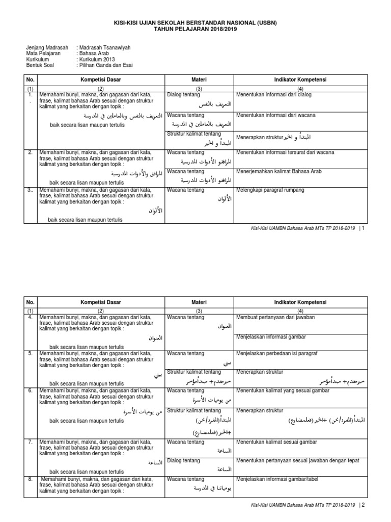 Kisi Kisi Soal Bahasa Arab Kelas 1 Mi / Kisi Kisi Soal Bahasa Arab Kelas 2 Mts Semester Genap Jawabanku Id : Kisi kisi soal bahasa arab kelas 1 mi.