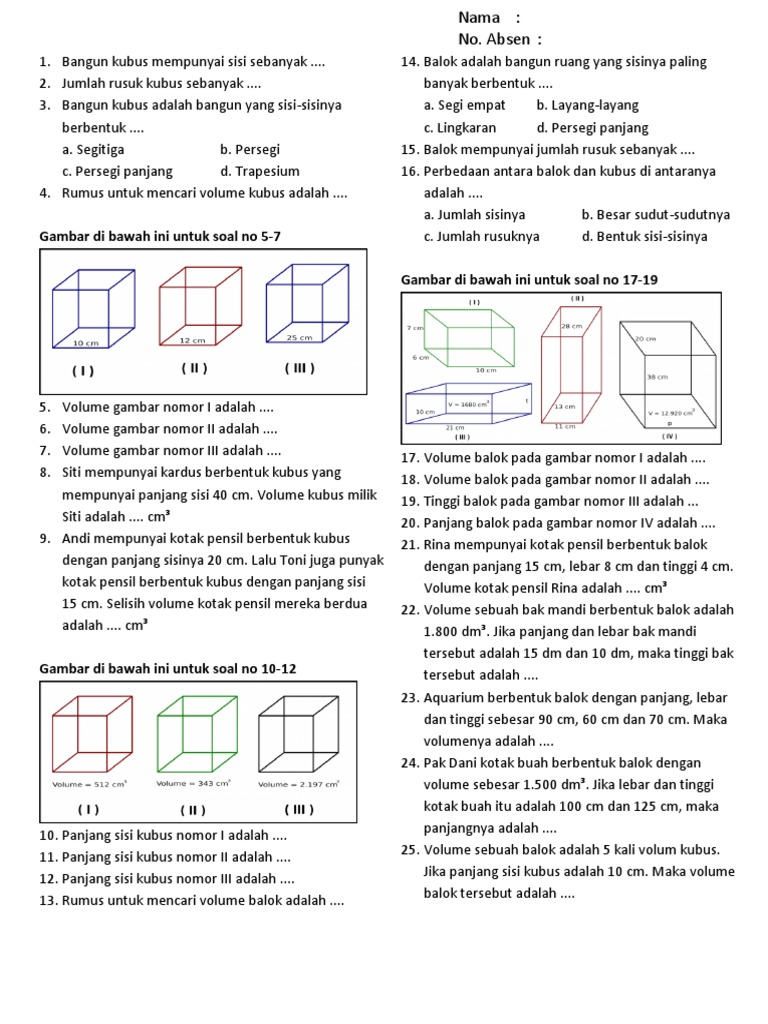 Volume sebuah balok adalah 5 kali volume kubus. Jika panjang sisi kubus adalah 10 cm. Maybe you would like to learn more about one of these? We did not find results for: Check spelling or type a new query.